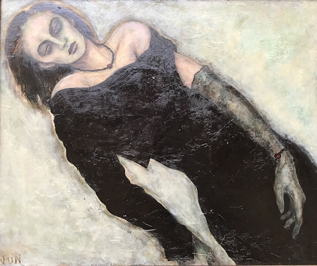 日本画家で伝統的な顔料を用い斬新なテクスチャでイメージを高めて居ます。