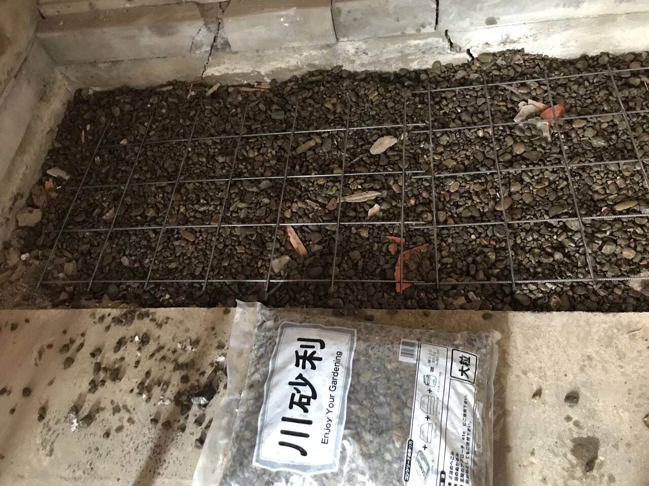 川砂利5袋と軽量鉄筋を敷いて雪が無くなれば作業を進めます。