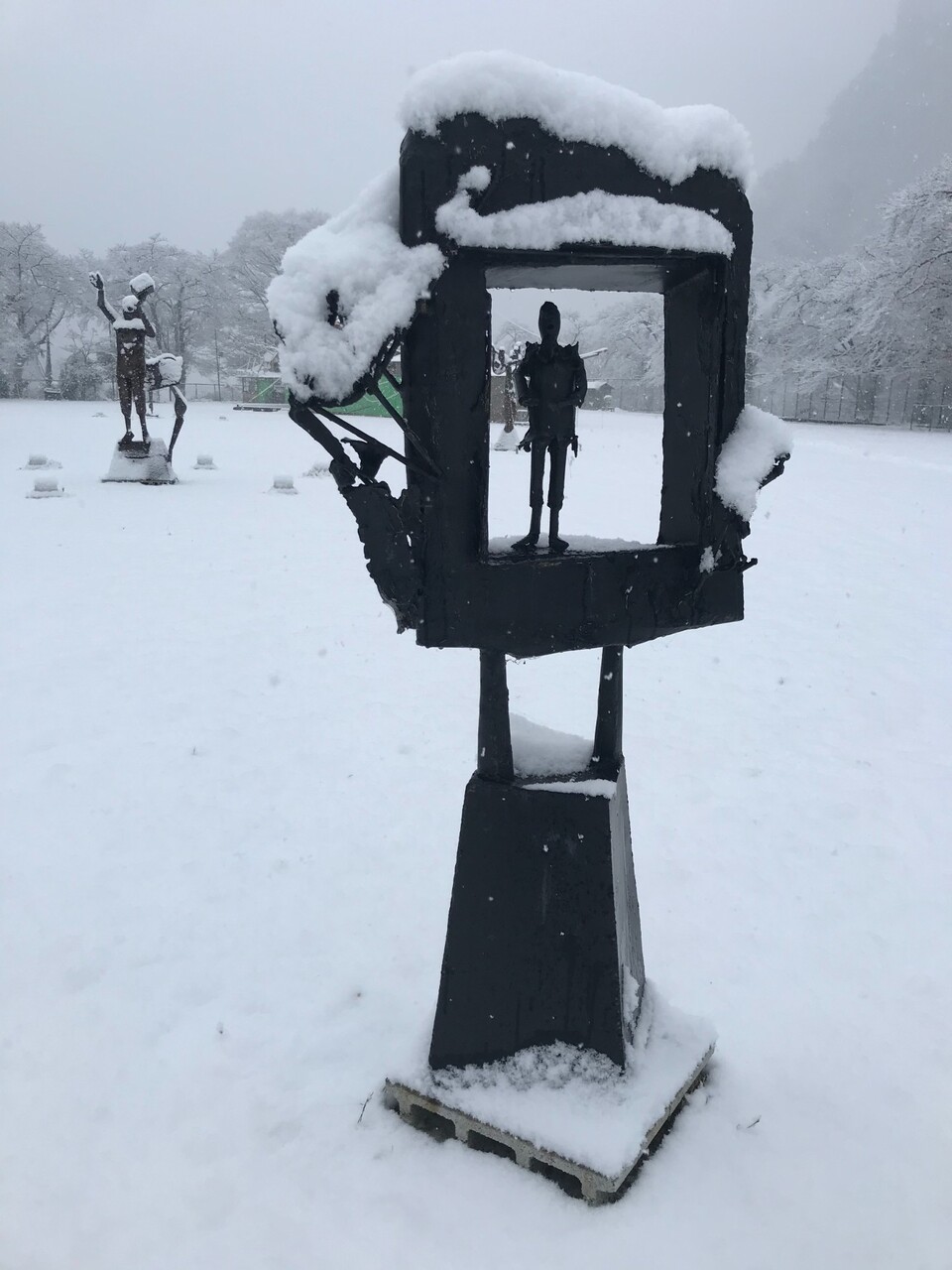 ミュウゼの彫刻もご覧の通り何度か雪化粧です。